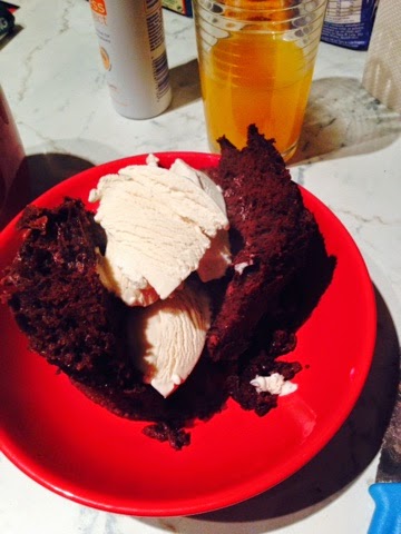 This evening I had decided that I wanted something sweet after dinner, and I could decide if I wanted to make a microwave mug cake or to have some ice cream. And in the end I let my friends decide- and they decided I should have both- so this is what happened: